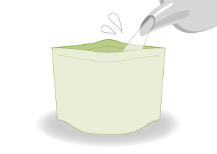 お湯か水を袋内側の注水線まで注いで、すぐによくまぜてください。袋のチャックを閉じてお待ちください。