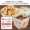 特定原材料等28品目を使用しておらず、食物アレルギーをお持ちの方も安心して召しあがっていただけます。保存期間は5年と長く、お湯や水を注ぐだけで簡単に食べられるため、いざという時に最適です。BOOK型のケースに入っており、収納にも便利です。袋の底が広がりやすく、熱湯や水を加えても倒れにくい設計になっています。スプーンも入っているので食器の準備も必要ありません。簡便さはもちろんのこと、国産のうるち米を100%使用しており、“安心”してお召しあがりいただけます。