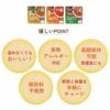 野菜(スイートコーン、にんじん、じゃがいも)、ひよこ豆(カナダ又はアメリカ)、