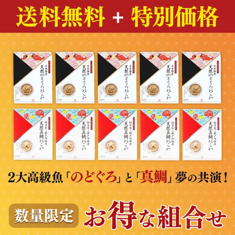 日本海産天然のどぐろおこわ×5箱、柚子香る瀬戸内海産天然真鯛おこわ×5箱
