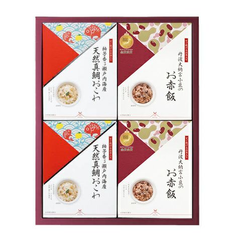 丹波大納言小豆のお赤飯×2箱、柚子香る瀬戸内海産天然真鯛おこわ×2箱