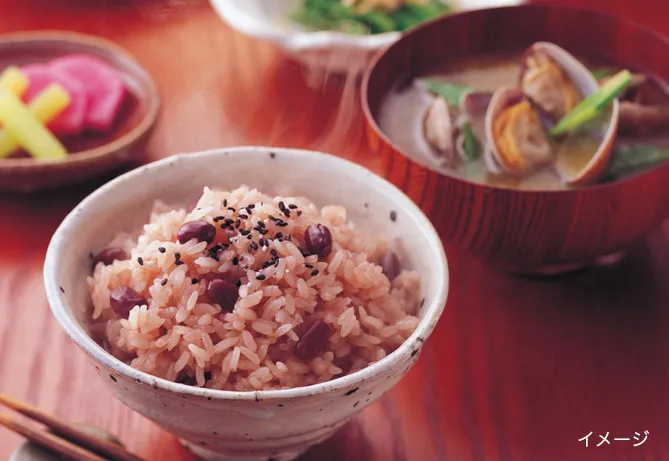 メインの小豆は、たんぱく質はもちろん、ポリフェノールや食物繊維が含まれることから、健やかな毎日のため積極的に摂りたい食材のひとつです。お赤飯は、おいしさと健康を兼ね備えたまさに「愛情ごはん」と言えるでしょう。