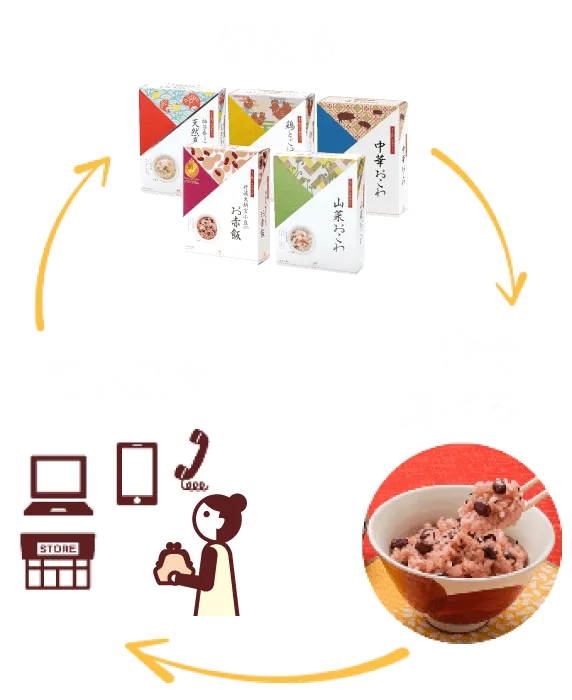 お食い初めから始まり、七五三、成人式と人生の節目や、お盆・お彼岸などの季節の行事に、手軽においしい「お赤飯」を食べていただきたいという想いを込めています。
